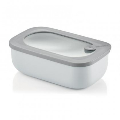 Boîte Bento grise 900 ml avec son couvercle avec fenêtre de visibilité.
