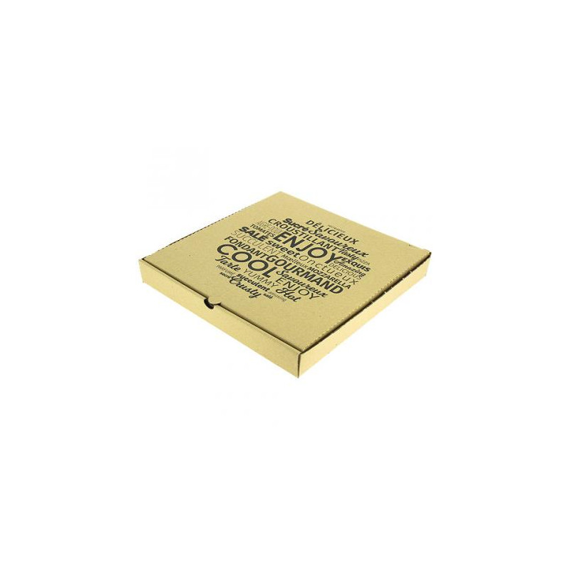 Optez pour la boîte à pizza en carton kraft brun 33 cm (lot de 100), un emballage indispensable pour les pizzerias, food trucks et services de livraison. Conçue en carton résistant avec un décor moderne passe-partout, elle assure une excellente protection de vos pizzas tout en conservant leur chaleur et leur saveur. Pratique et fiable, cette boîte à pizza 33 x 33 x 3,5 cm est idéale pour la vente à emporter et la livraison à domicile.