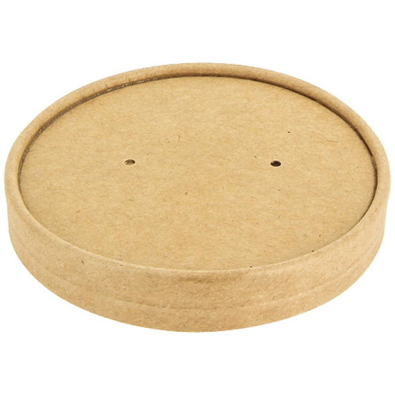 Couvercle en carton kraft brun, conçu pour les pots 3040008KR, 3040012KR et 3040016KR. Dimensions : 100 x 100 x 12 mm. Idéal pour conserver vos soupes, glaces ou préparations chaudes et froides en vente à emporter.
