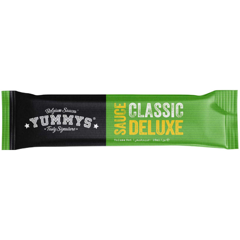 Ce produit bénéficie de frais de livraison réduits !La sauce Classic Deluxe Yummys en sachets individuels de 10 ml est une sauce émulsionnée froide prête à l’emploi, spécialement conçue pour les professionnels du snacking et de la restauration rapide.